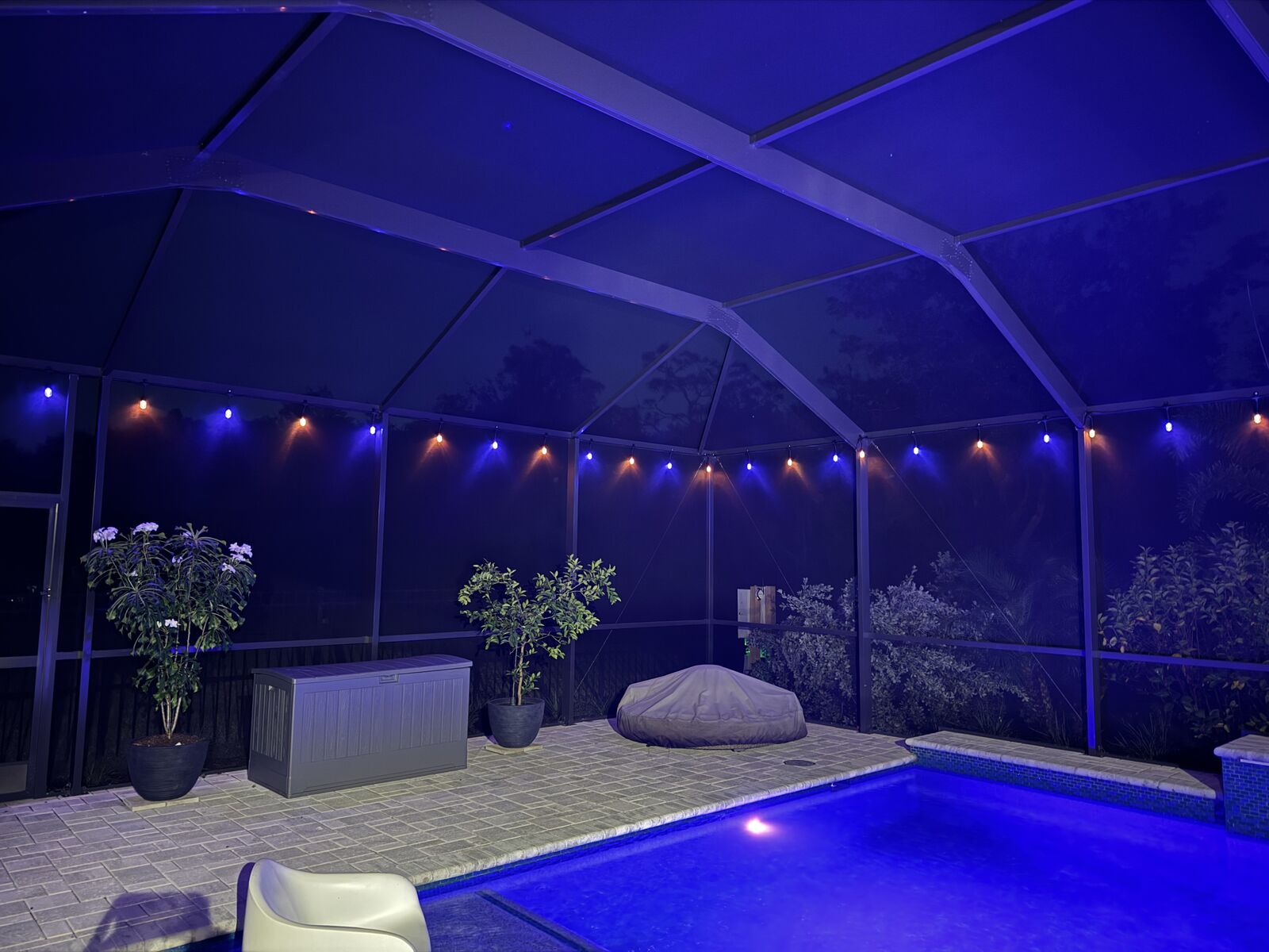 Space clips every 12-18 inches, hang your lights, done. Full lanai installation takes less than an hour.